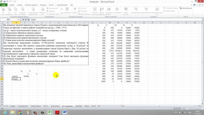 Лекция -1. Решение задачи максимизации прибыли в программе Excel – опция "Поиск решения"